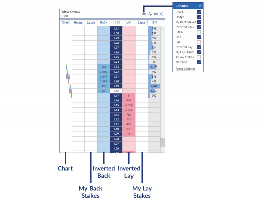 In this last example, once again BACK and LAY Inverted columns are used. The difference is that the BACK and LAY columns have swapped positions, so the BACK column is on the left and the LAY column is on the right.