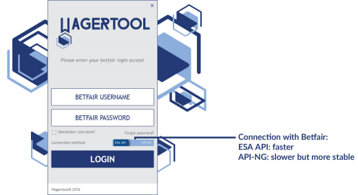 The Wagertool login credentials are the same you use at Betfair because Wagertool works as a communication channel between you and Betfair.